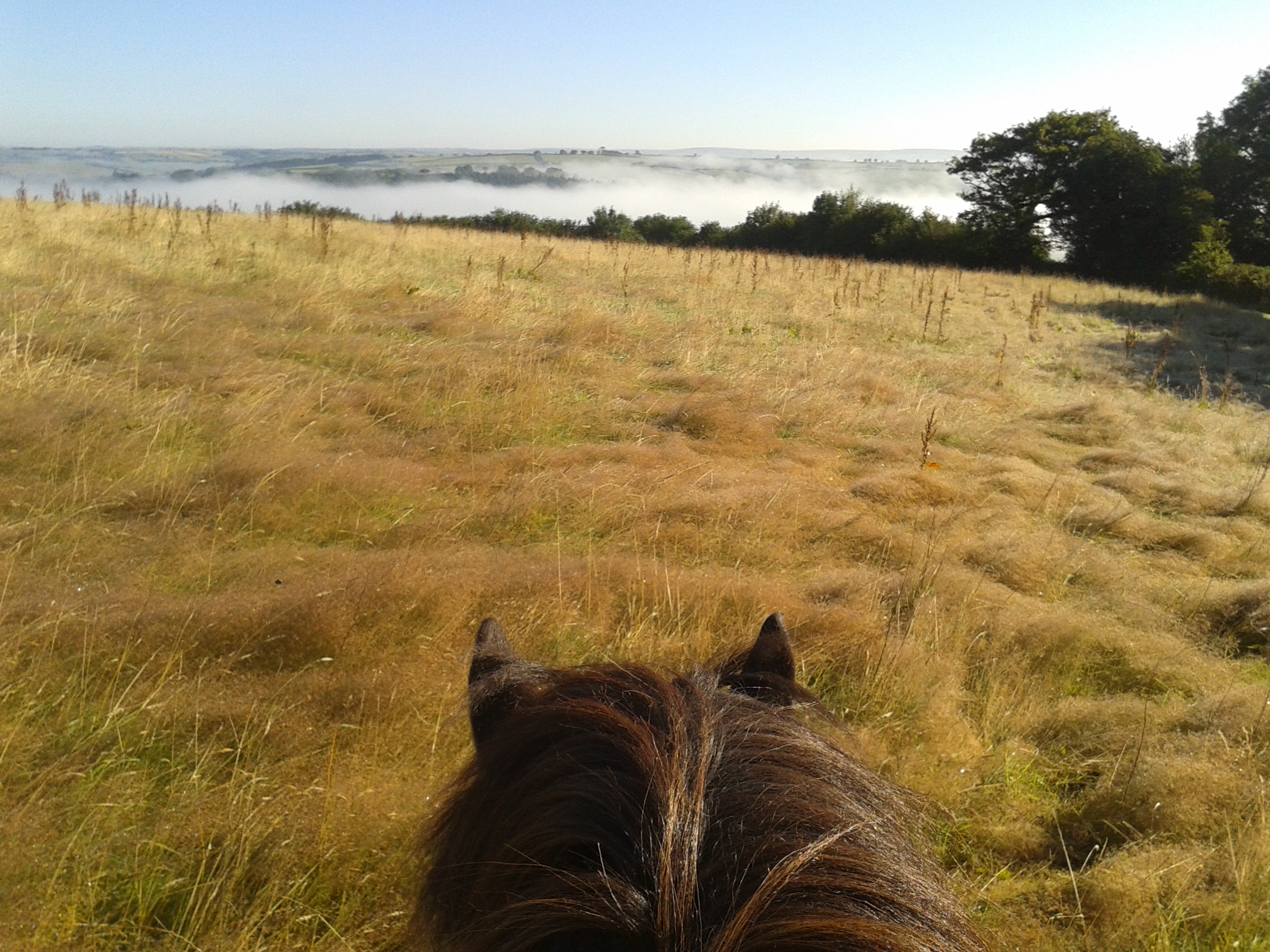 Yesterday Galahad and I rode out with my sister and we braved the hay bales in the field up the hill. They are apparently safe enough to ride past now, although they still have to be closely watched. We had a couple of proper gallops again but this time Galahad went where I was intending and stopped when I wanted. He is clearly a lot fitter than he was a few months ago as he can now canter the whole way up hills where he couldn’t before. It is something that seems to have happened all of a sudden without me noticing! It’s rather gratifying – we must be doing something right!