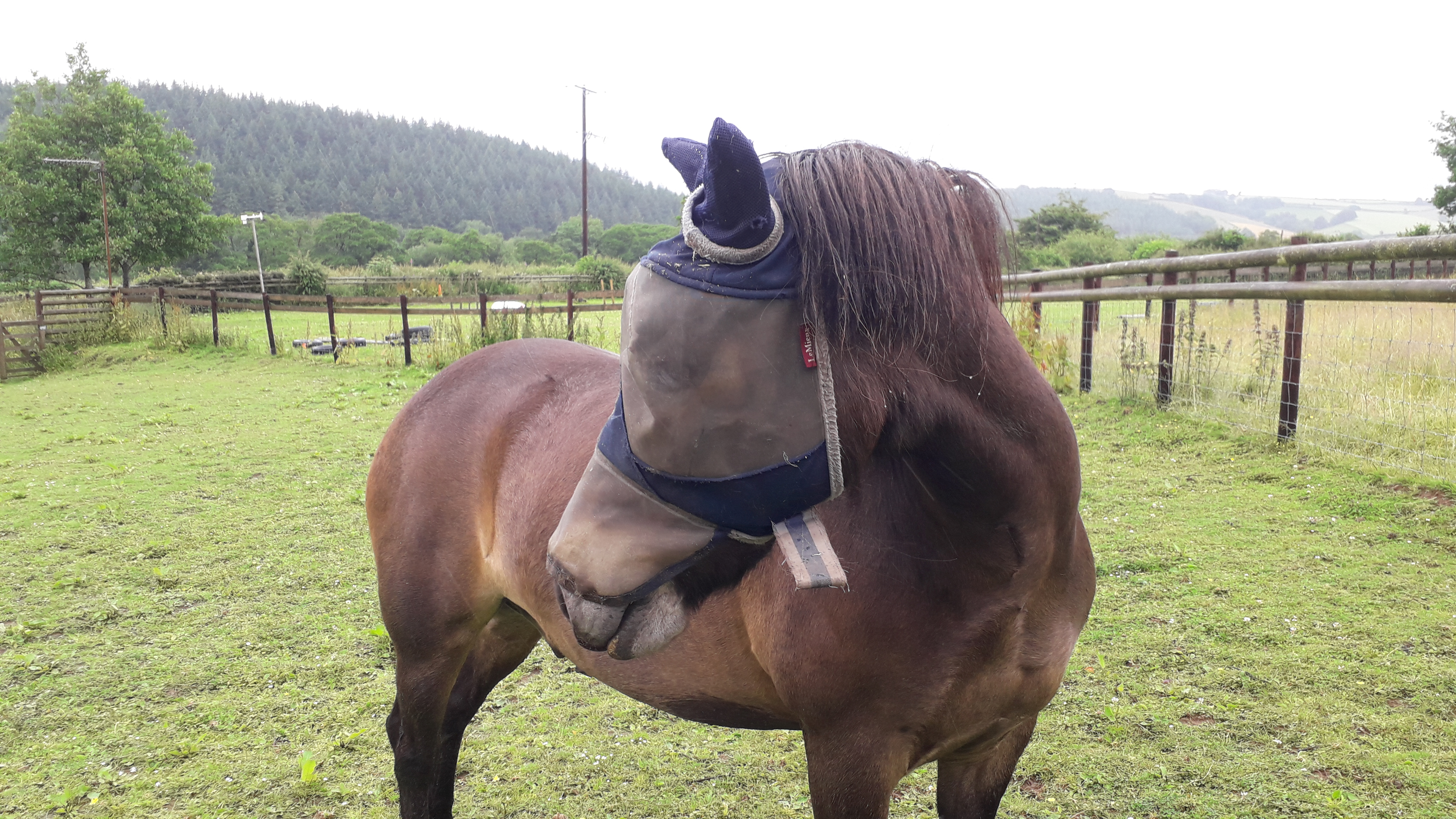 In other news, we are finally getting the rain the fields so badly need. When I went out to ride today I thought the ponies might be able to have a rare afternoon mask free because there was no way there would be flies about in that downpour. Sadly, by the time we finished the rain was easing and the flies were back. It was a nice thought though!